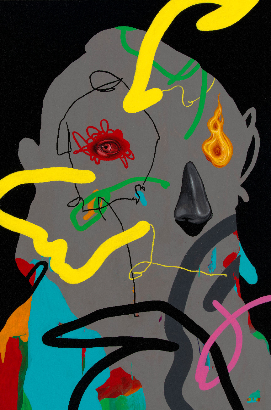 Doom Scroller - 24x36" Acrylic on wood panel. 2022