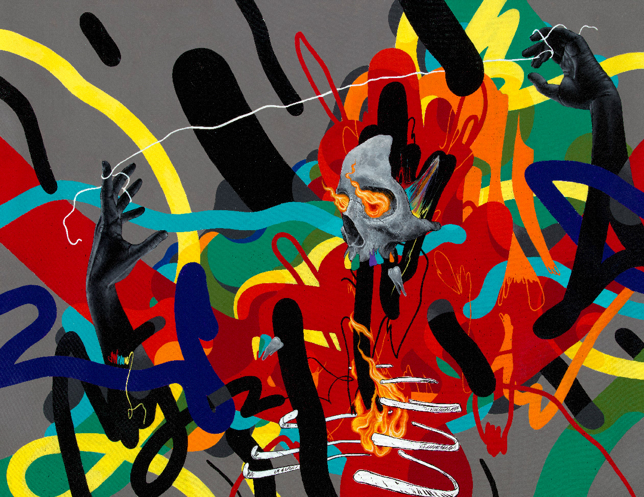 Zucker-Lon (The String Pullers) - 36x48" Acrylic on Canvas. 2022